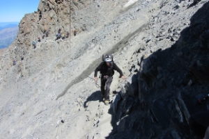 L'expédition au Mont Blanc commence le 23 aout 2016 à 7 heures. Départ de la gare de Tram de St Gervais le Fayet. Groupe de 8 personnes. Arrivée au terminus du tram au Nid d'aigle. Montée jusqu'àu refuge de Tête Rousse. Traversée du couloir d'avalanche surnommé le"Couloir de la mort". Ensuite montée de la paroi rocheuse d'accès au refuge du gouter. arrivée au refuge du gouter à 17 heures. nuit au refuge. l'accès au refuge se fait sur réservation a prévoir longtemps à l'avance. le 24 aôut départ à 4 heures du matin avec les lampes frontales. pause au refuge Vallot puis montée de l'arête sommintale et arrivée à 8 heures 45 au sommet. Les radio amateurs installent leurs systèmes de transmissions et commencent à émettre. Nous avons profité d'un temps magnifique. Pas de nuages, seulement un grand vent et froid intense. A 12 heures arrêt des transmissions radio et descente sur le refuge du gouter; puis le refuge de tête rousse. Arrêt à tête rousse pour la nuit et decente finale le lendemain matin pour arriver à Chamonix à midi. Je tiens à remercier André pour m'avoir offert la possibilité de réaliser cette expédition. Fred qui a été mon compagnon de cordée. Mathieu pour sa bonne humeur et pour ce magnifique film sur la descente de l'aiguille du midi. et également tous les autres membres de l'expédition sans oublier Jean qui était en contact radio en permanence avec l'équipe depuis Chamonix et qui a assuré notre sécurité à tous. Quelques conseils: Le Mont Blanc ça se prépare, on ne peut pas partir la veille du boulot et monter au sommet du Mont Blanc. Quelques personnes tentent de monter sans préparation, mais ces personnes ne parlent jamais des problêmes qu'ils ont rencontrés (mal aigu des montagnes, mise en danger d'autres personnes pour les secourir en cas de difficultés). Une bonne préparation passe par une aclimatation à l'altitude, et quelques traversées de glaciers avec équipements pour s'habituer à cet équipement. Surtout il faut avant tout ne pas surestimer ses capacités et également posséder un équipement de montagne ( vêtements chauds et étanches, gants , chaussures de montagne, crampons, piolet , casque,lampe frontale, boissons, , harnais et corde, nourriture et boisson). Pensez également à réserver plusieurs mois en avance votre nuit au refuge du gouter. si vous n'avez pas de réservation vous serez bloqué au refuge de tête rousse