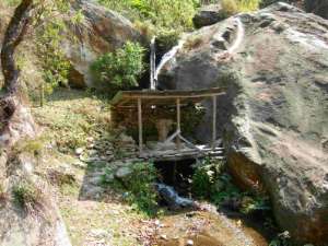 Jeudi 29 mars. Température 20° à 7 heures 30. Beau temps très clair. Nous nous arrêtons à Bhul Bhule à 10 heures pour déjeuner. La température augmente rapidement, il fait déjà 30°. Arrivée à la fin d'étape à Ngadi à 13 heures altitude 908 mètres. Moulin à grains entrainé par cascade d'eau avant Ghermu