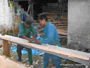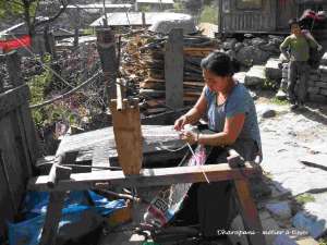 Jeudi 03 mai. Départ à 9 heures 15. Arrivée à Melamchi Gaon à 12 heures. Altitude 2570 mètres. Beau temps. Menuisiers à Tarkeghayang
