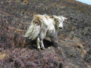 Jeudi 05 avril. Température 11° dans chambre à 7 heures 15. Beau temps ensoleillé. Journée d'acclimatation. Visite autour de Manang, monté au lac sur colline face à Manang, visite temple. La nuit toujours maux de tête et nausées. Nack, croisement de yack et vache locale