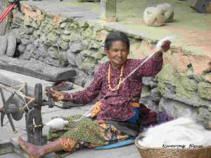 Dimanche 15 avril. A 5 heures du matin monté sur le versant de la montagne pour prendre des photos du lever de soleil sur le Dhaulagiri. départ du village à 7 heures 30. Beau temps, soleil. arrivée à Tadapani à 14 heures. Altitude 2705 mètres. Fileuse à Kyumrong