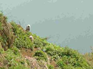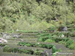 Jeudi 19 avril. Température 4° à 6 heures dans la chambre. Nous reprenons le chemin en sens inverse. Départ 7 heures. déjeuner à Himalaya. Arrivée à Bambou à 15 heures sous une pluie battante. Culture en terrasse