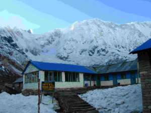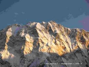 Samedi 14 avril. Départ 8 heures. Arrivée à 15 heures 30 à Gorepani. Passage au nouvel an . Année 2064. lever de soleil sur les Anapurna
