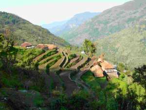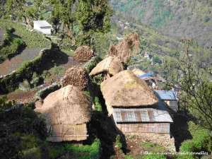 Lundi 23 avril. Départ 8 heures 10. Rejoint Deurali, puis Pothana pour déjeuner. Arrivée à 14 heures 15 à Dhampus.. Position N 28° 18,025' E 083° 50,938' altitude 1732 mètres. Pluie et orage à 15 heures. Village de Tolka
