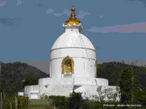 Mardi 24 avril. Départ à 8 heures. Arrivée à Phedi à 9 heures 15. Fin du trek. Rejoint Pokara en taxi. Stupa de la paix à Pokara