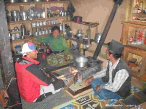 Samedi 05 mai. Départ 8 heures 15. Déjeuner à Shermathung à 11 heures 10. Départ à 13 heures. Arrivée à Kakani à 14 heures 45. Descente sur Melanchi