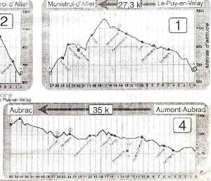 Il éxiste des feuilles photocopiées disponibles dans certains gites le long du chemin de St Jacques. Ces feuilles sont très pratiques, elles répertorient en recto-verso sur une feuille 28 étapes pour rejoindre Roncevaux, mais chacun pourra adapter la longueur de chaque étape en fonction des ses aptitudes. Celle que je posséde étant vraiment abimée, je ne joins qu'une partie à peu près en état. Il existe également le même type de feuille pour la partie Ronceveaux -St Jacques de Compostelle en 27 étapes.